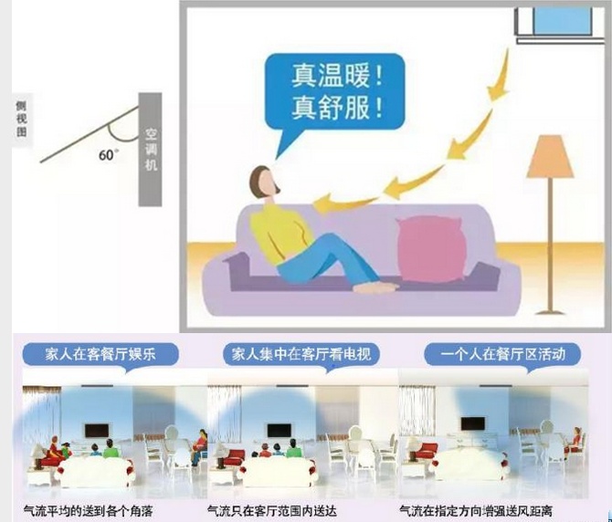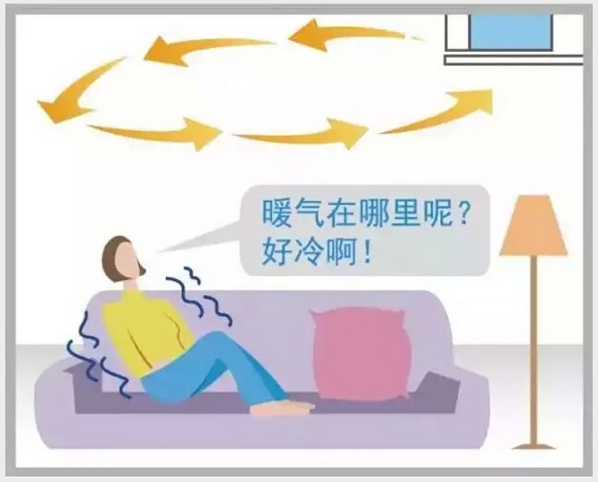冷暖氣流在哪里吹呢?您是否也有上圖中一樣的煩惱,夏天對著風口有涼風,沒有風口的地方就汗如雨下,冷氣流強烈直吹,感覺特別不舒服,嚴重威脅著家人的健康;冬天暖風都在天花板上了,我們一點暖和的感覺都木有呢!這是腫么啦.....